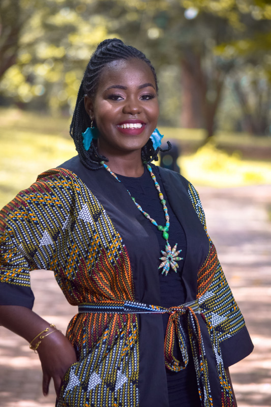 Stylish Green Ankara Kimono with Paper bead necklace and Africa-Shaped Wooden Earrings
