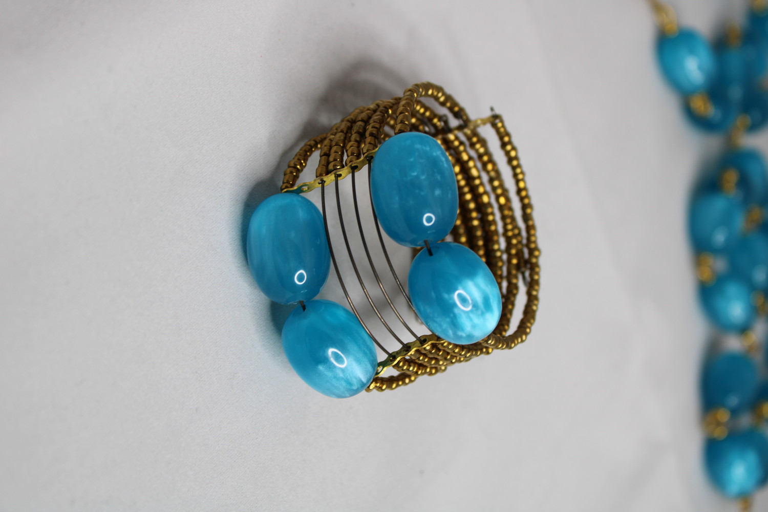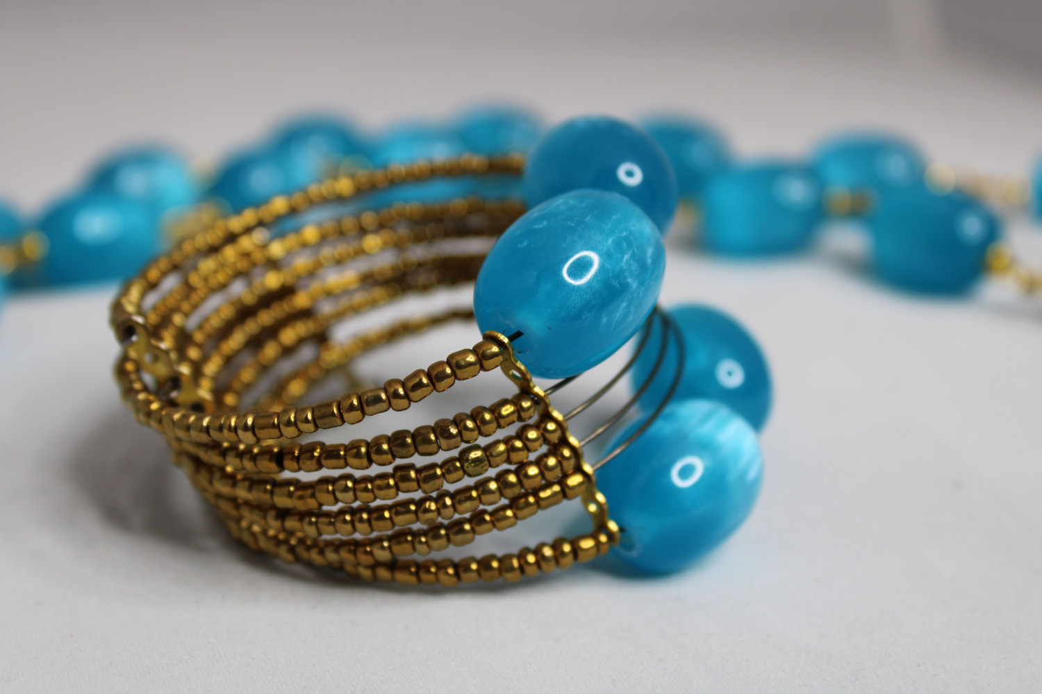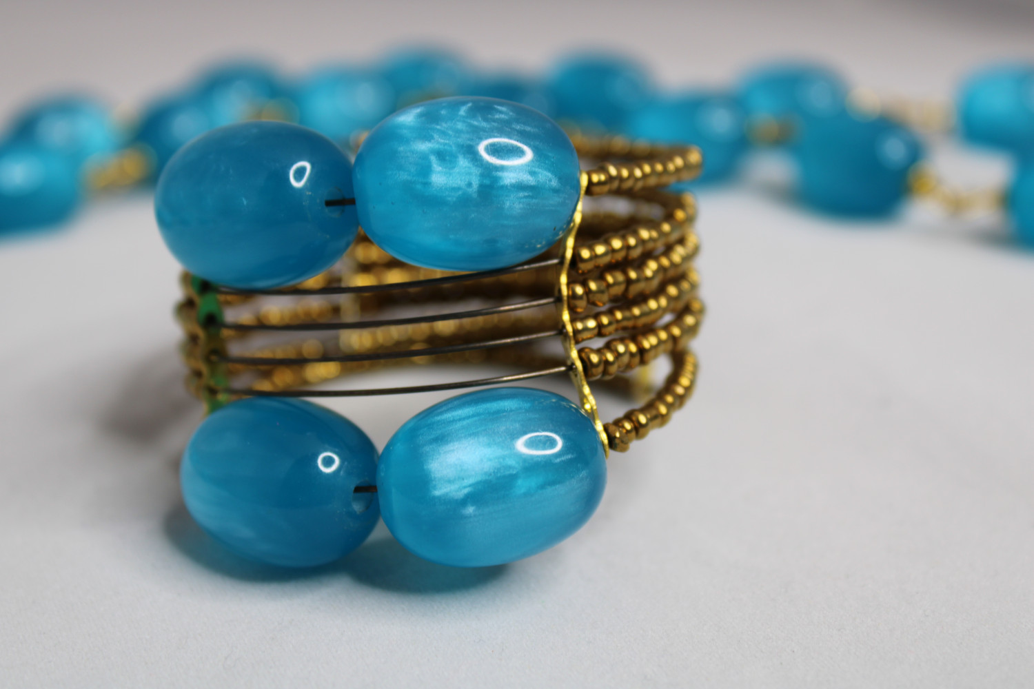 Gold Bead And Blue Amber Bracelet