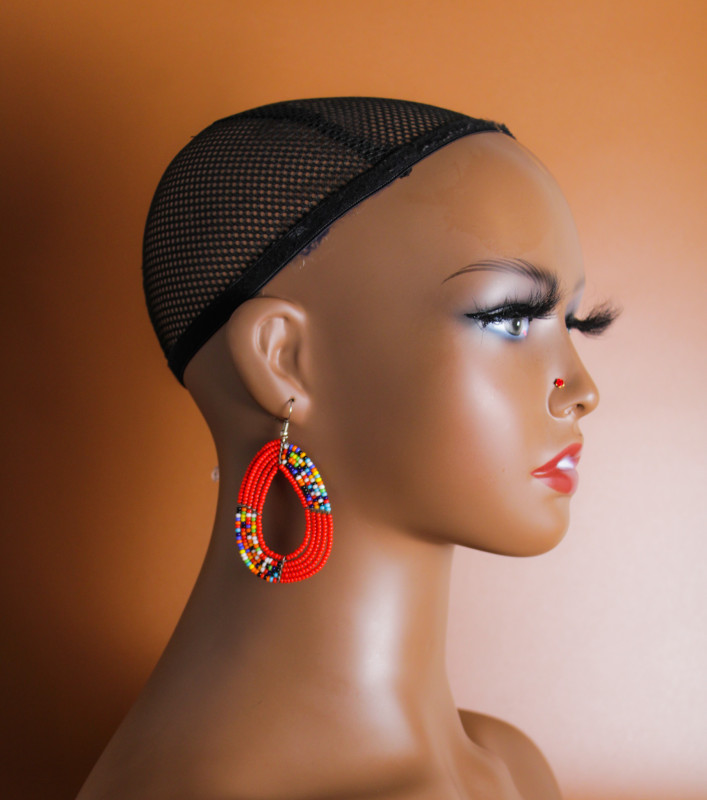 Maasai Orange Beaded Earring